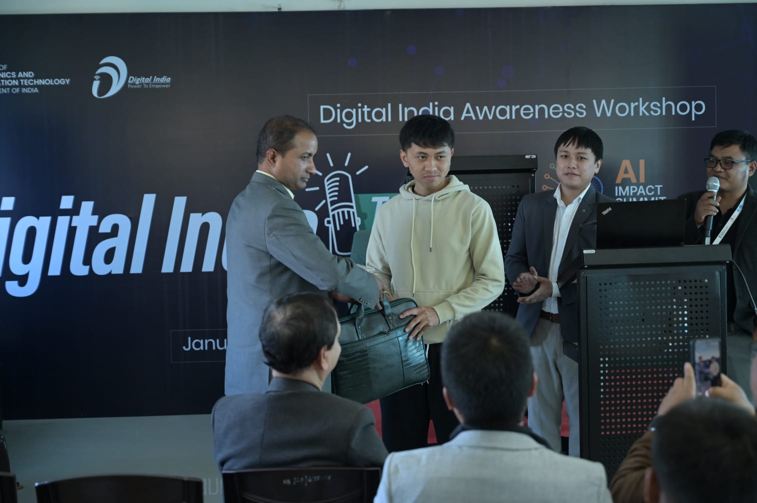 A Digital India Awareness Workshop focusing on the India AI Impact Summit 2026 and key Digital India initiatives was organised on 23 January 2026 at the National Institute of Electronics and Information Technology (NIELIT), Aizawl, Mizoram. The workshop saw the participation of around 250 students, professionals, government officials and technology enthusiasts, reflecting strong interest in digital and AI-led development in the State. The programme opened with a welcome address by Shri T. Gunendra Singh, Director, NIELIT Aizawl, followed by a keynote address from Shri Vanlalringa, Principal Informatics Officer, ICT Department, Government of Mizoram, who highlighted the State’s progress in e-governance and digital infrastructure. The Chief Guest, Dr. Y.L.N. Reddy, IAS, Secretary, ICT Department, spoke on the role of artificial intelligence and digital tools in governance, education and economic growth. Expert sessions on the IndiaAI Mission, the upcoming India AI Impact Summit 2026, and flagship Digital India platforms such as DigiLocker, UMANG and myScheme were also conducted. The workshop concluded with an interactive AI quiz and prize distribution.