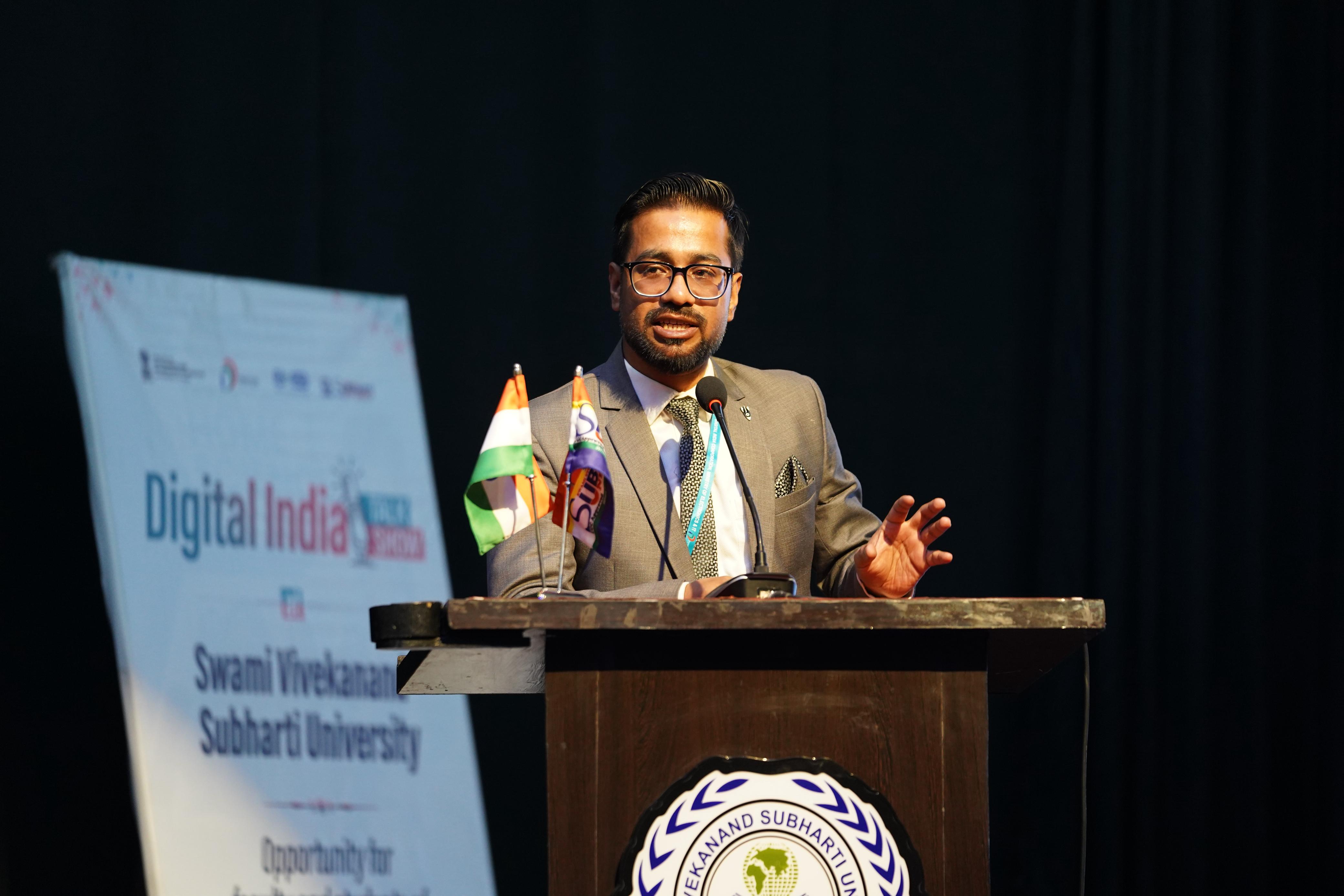 A Digital India Talk Show cum Interactive Session was conducted at the Swami Vivekanand Subharti University, Meerut, on April 13, 2026, engaging over 500 students and faculty members. The session aimed at enhancing awareness of Digital Public Infrastructure (DPI), cybersecurity, and emerging technologies among the youth. Expert sessions by the National e-Governance Division (NeGD) covered key initiatives such as DigiLocker, UMANG, API Setu, MeriPehchaan, Academic Bank of Credits (ABC), National Academic Depository (NAD), and APAAR ID, along with insights on cybersecurity and the Digital Personal Data Protection Act, 2023. The interactive session included discussions, Q&A and a Digital India Quiz, followed by a prize distribution ceremony. The programme concluded with a Vote of Thanks by Prof. (Dr.) Manoj Kapil, Dean, SITE.
