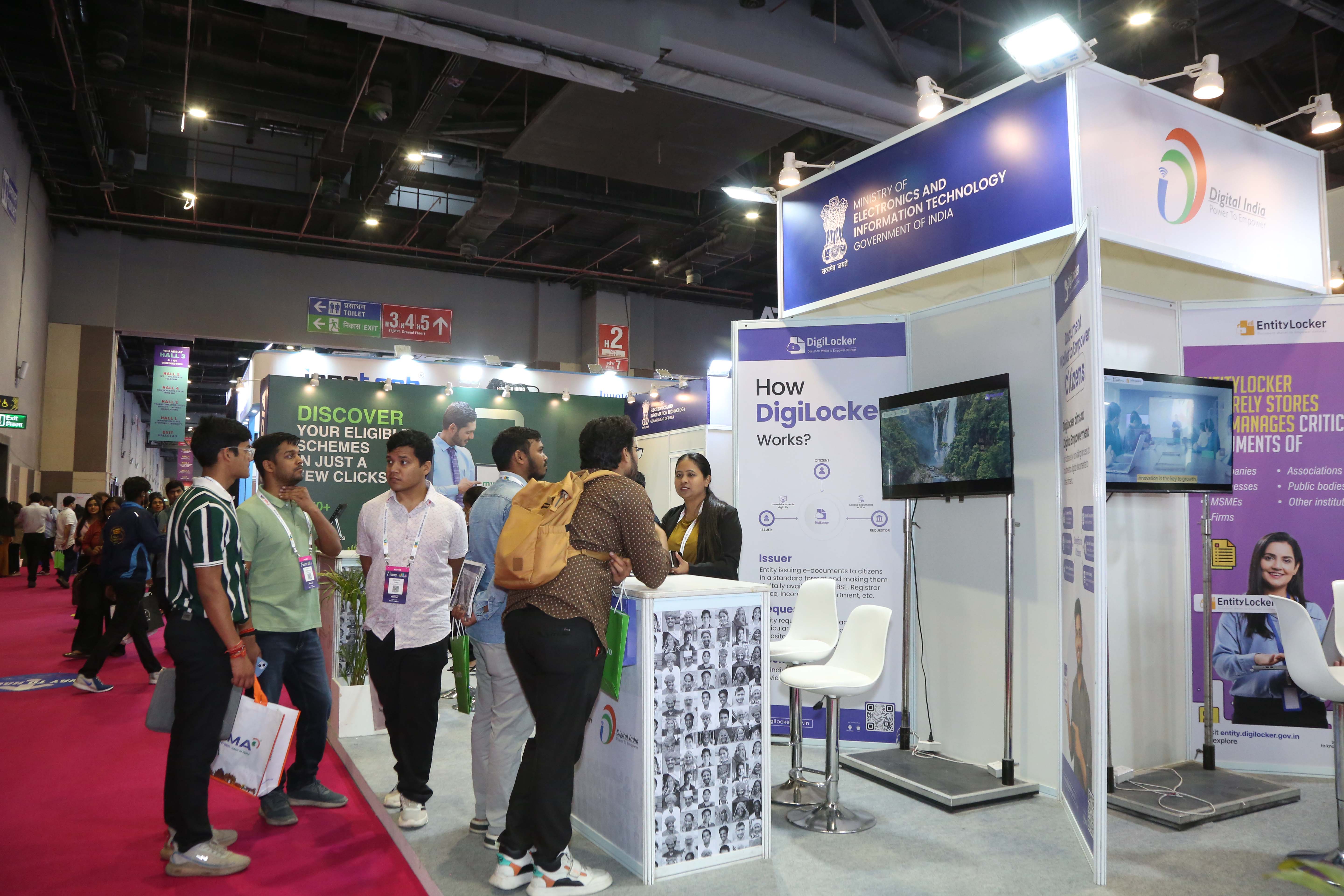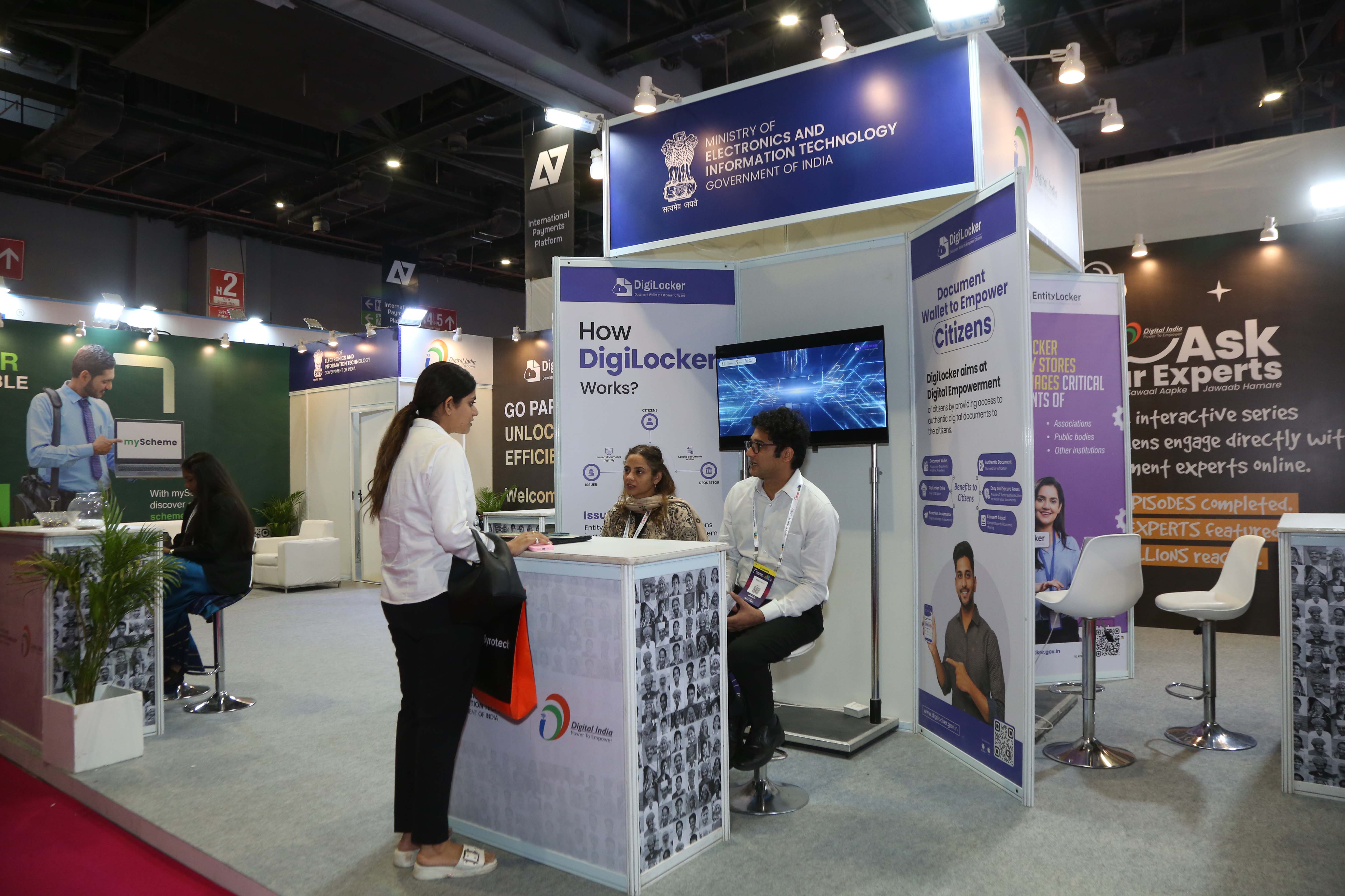 Ministry of Electronics and Information Technology (MeitY), participated in the 33rd edition of Convergence India 2026—a premier technology and innovation exhibition platform from March 23 – 25, 2026 with the aim to showcase key Digital Public Infrastructure (DPI) initiatives that are transforming service delivery across the country. Designed on the theme “Empowering Citizens and Businesses through Digital Public Infrastructure”, the MeitY pavilion showcased flagship digital platforms developed under Digital India such as DigiLocker, Entity Locker and UMANG. The initiatives were showcased through interactive displays, experiential zones, LIVE demos on services, Use-case driven storytelling for real-life impact and Assisted walkthroughs for visitors.